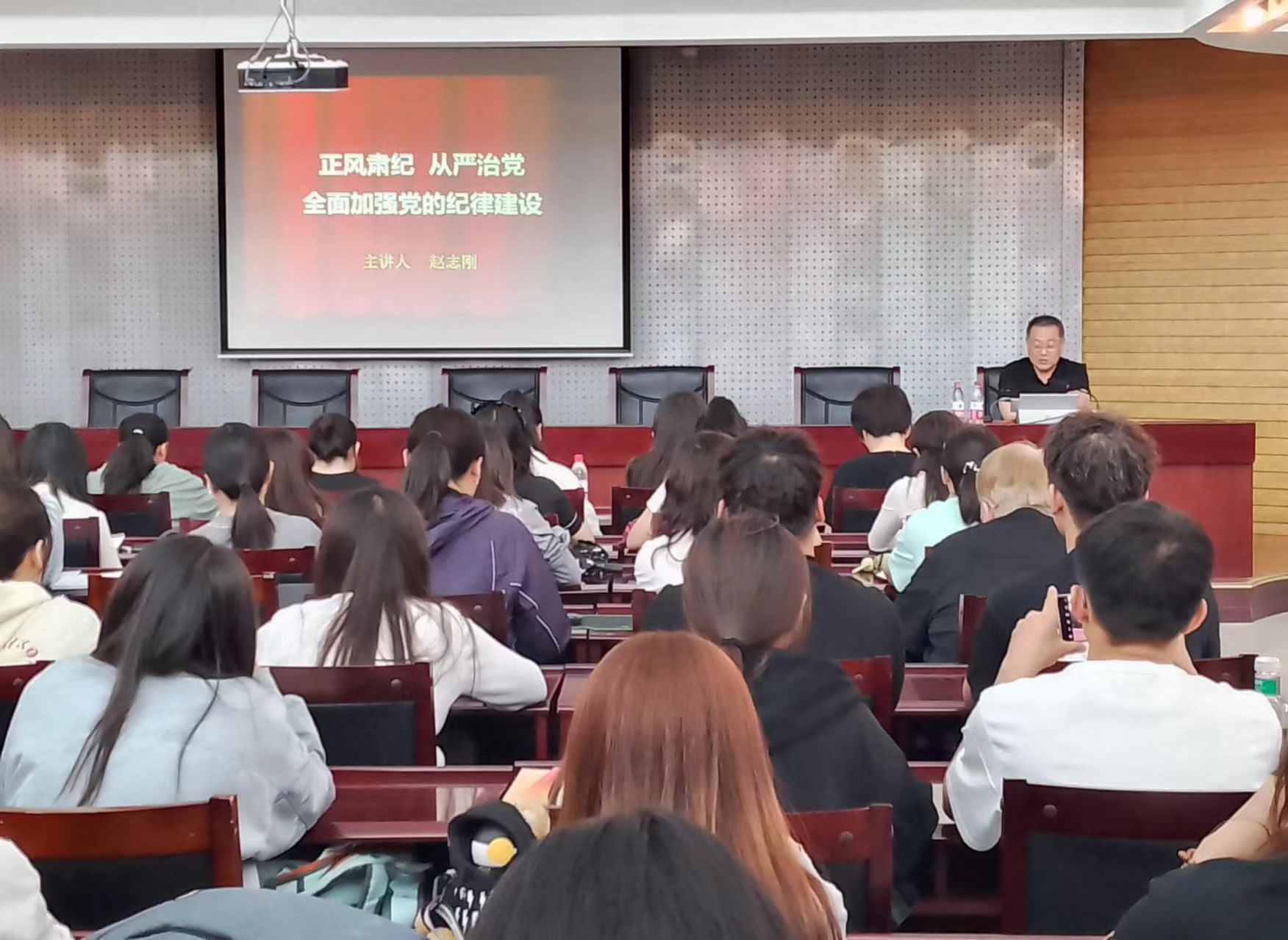 为了推动党纪学习教育进一步走深走实,不断用党规党纪校正思想和行动,增强纪律意识、提高党性修养,2024年6月6日下午,beat365官方网站党委特邀包头市委党校副校长赵志刚同志做了题为《正风肃纪 从严治党——全面加强党的纪律建设》的党纪学习教育专题讲座。讲座由学院党委副书记、副院长薛建春同志主持,学院180余名师生党员参加了讲座。