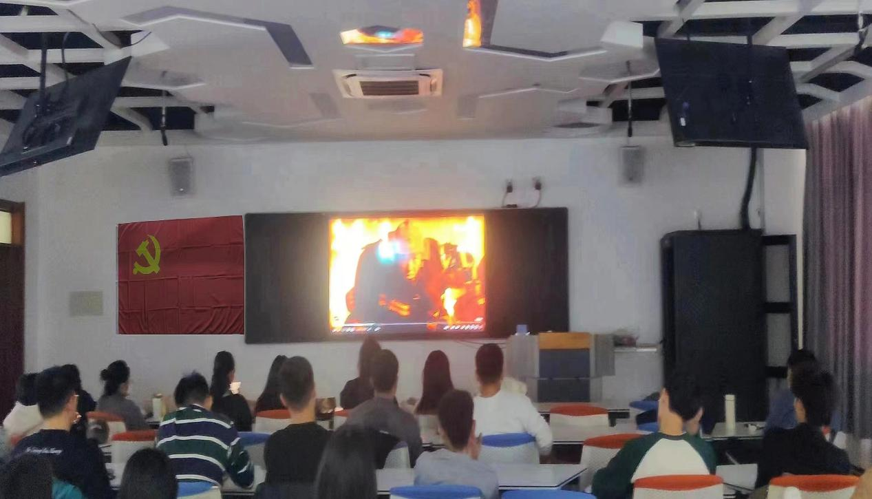 11月9日是全国消防日,为进一步普及消防安全知识,增强全体党员及积极分子消防安全意识,提高消防安全能力,2023年11月9日beat365官方网站学生第三党支部于教学楼H505开展"关注消防,生命至上"主题党日活动,观看以防火救灾为教育题材的影片——《烈火英雄》。