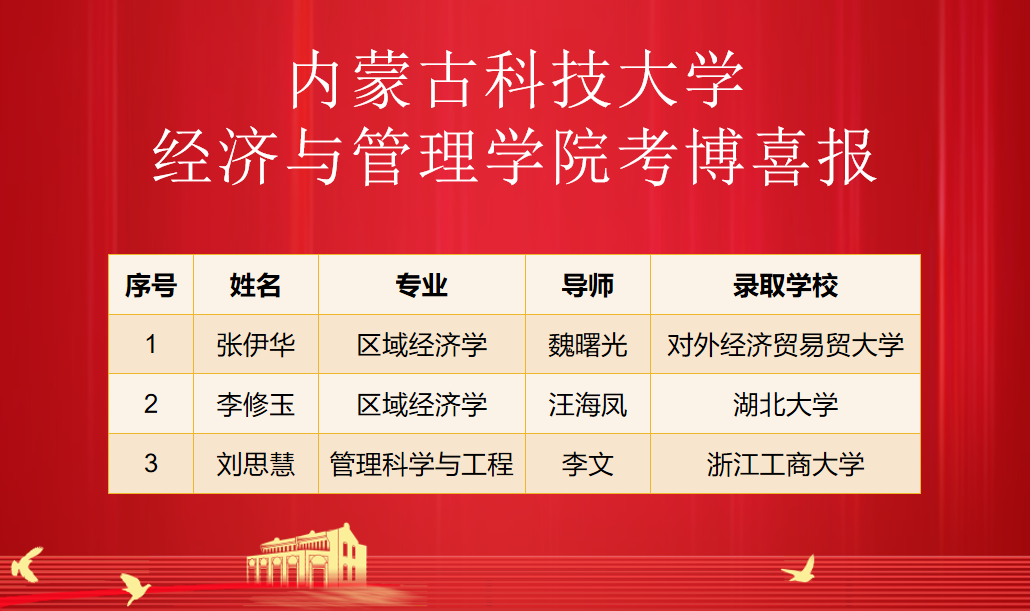 随着2023年全国博士研究生招生录取工作接近尾声,经过导师们的悉心指导和研究生的不懈努力,beat3652023届毕业生不负众望,共3名应届硕士研究生被录取为博士研究生。具体录取信息如下: