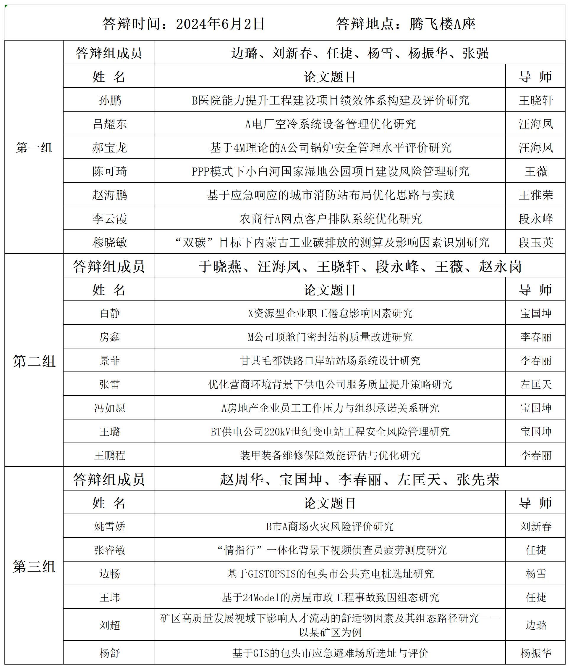 2023-2024学年第二学期硕士研究生答辩安排-工程管理专硕