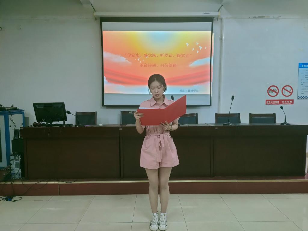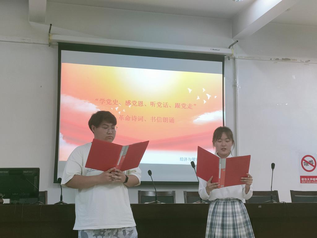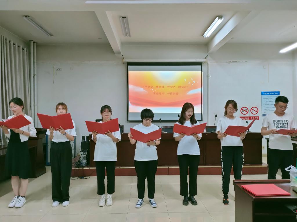 为推进党史学习教育进班级,做到学史明理、学史增信、学史崇德、学史力行,切实增强“四个意识”坚定“四个自信”、做到“两个维护”,按照《beat365官方网站党史学习教育工作方案》安排,学院级特开展“学党史、感党恩、听党话、跟党走”革命诗词、书信朗诵活动。