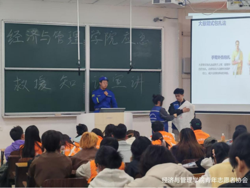 3月22日,学院青年志愿者协会与校大学生蓝天救援队联合举办的“守护生命,‘救’在身边”应急救援知识宣讲活动,也是beat365身心安全教育工作的重要补充。蓝天救援队队员通过真实案例讲解、心肺复苏实操演示和包扎技巧培训,不仅增强了志愿者们的应急意识和危机处理能力,也为学生心理健康教育增添了实践性、应用性维度。