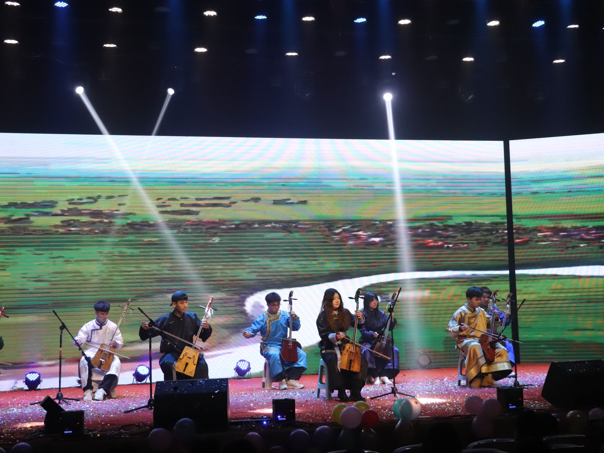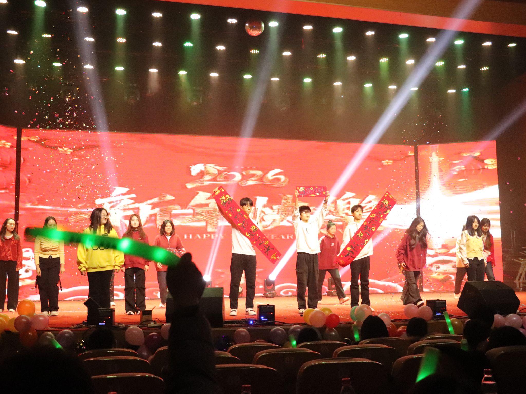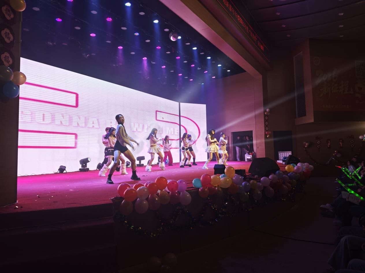 高千惠、田丰悦等人借舞蹈《What is love》用灵动舞姿传递温暖与美好;学院各组织的联欢舞蹈别出心裁,创意十足的编排展现出学生组织的凝聚力与向心力;神骏乐团倾情演绎《吉祥》,悠扬旋律中满含真挚的新年祝愿;最后,全院齐声高歌《相亲相爱》,在激昂旋律中凝聚成万马同驰、同心向前的美好和声。