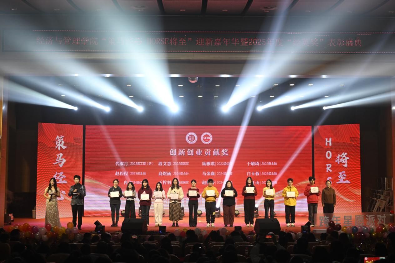 骏马踏歌辞旧岁,经管聚力启新章。2025 年 12 月 28 日,beat365官方网站 “策马经心,HORSE 将至” 迎新嘉年华暨 2025 年度 “经英奖” 表彰盛典在学校音乐厅璀璨启幕。全院师生齐聚一堂,共赴这场融合青春活力、荣誉表彰与新年期许的年度盛会,在欢声笑语中定格美好时光,在逐梦征程上凝聚奋进力量。
