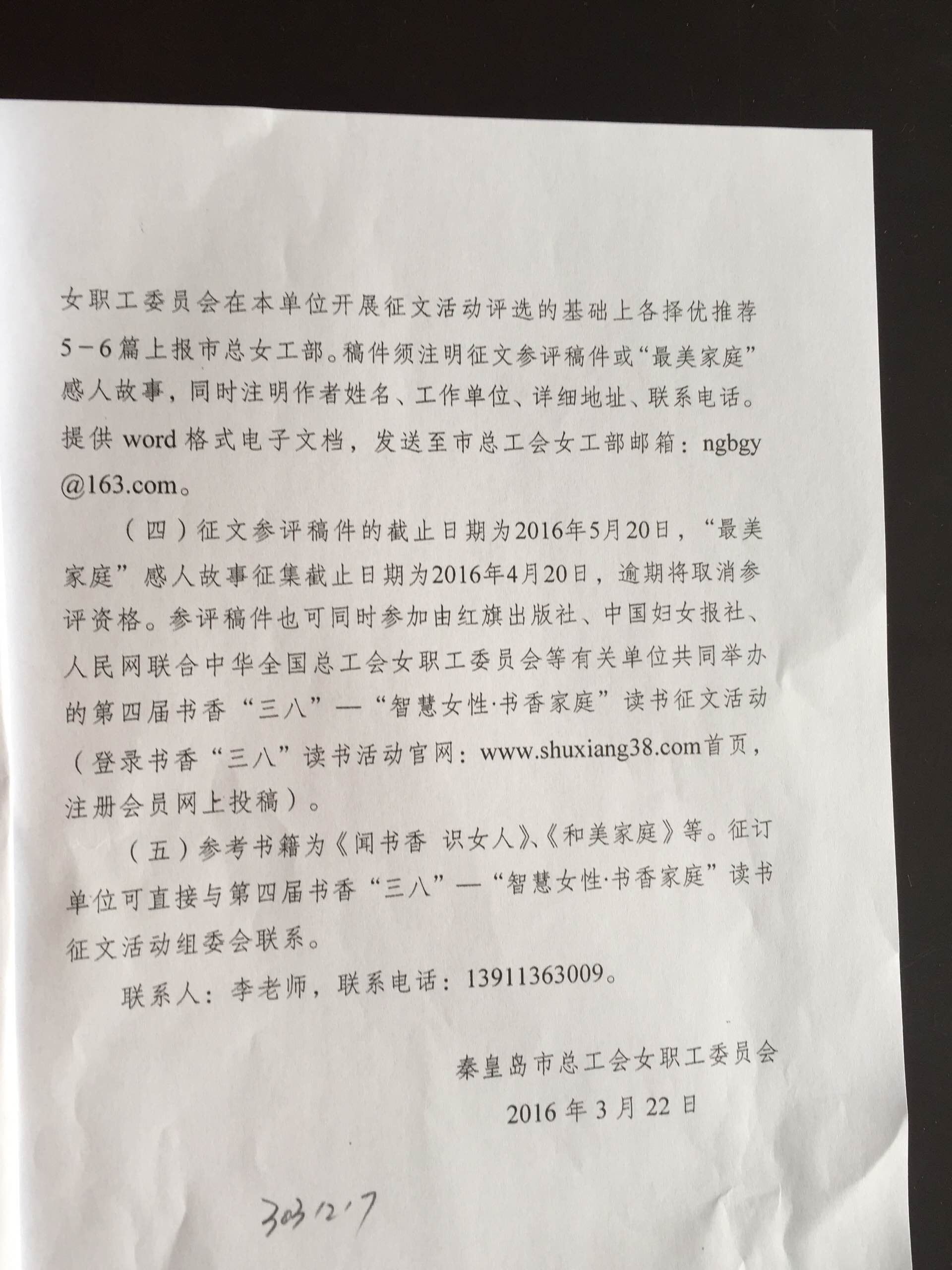 秦皇岛市总工会关于开展书香“三八”——“智慧女性.书香家庭”读书活动的通知