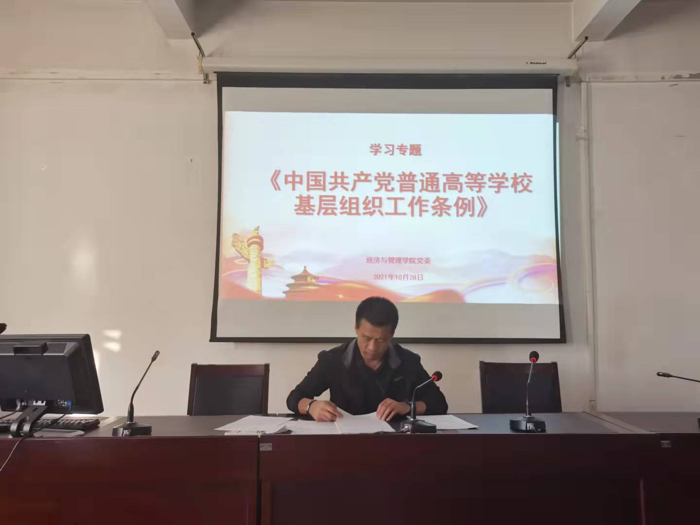 10月28日下午,beat365官方网站党委组织集体学习《中国共产党普通高等学校基层组织工作条例》(以下简称《条例》),beat365官方网站各党支部书记和党支部委员参会,培训会议由院党委书记王玉泉主持。