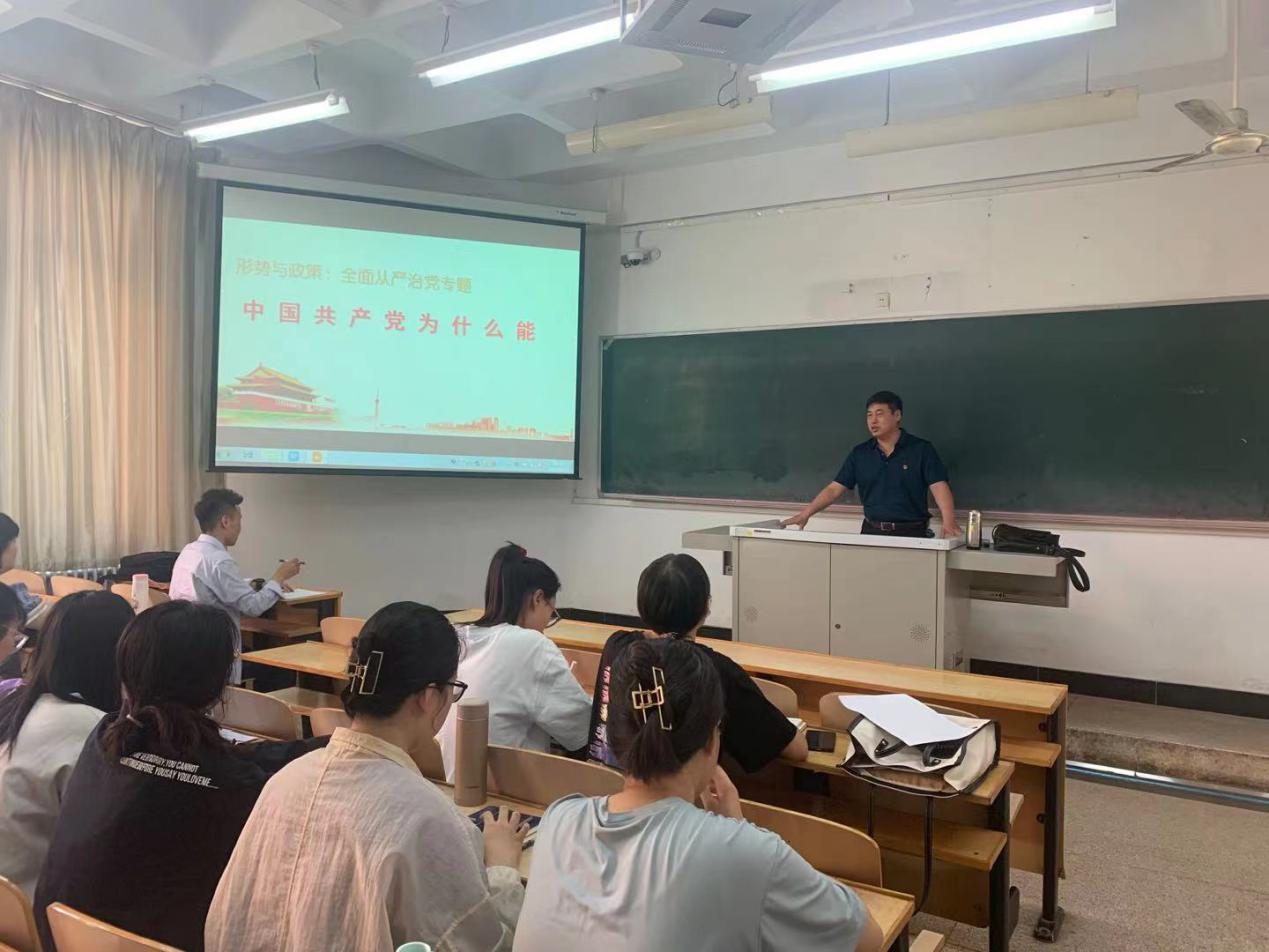2021617日,马克思主义学院党总支书记马广辉在第二教学楼B110为beat365官方网站工商201880名本科生讲授《形势与政策》课,讲课主题是:中国共产党为什么能。中国共产党从小到大、由弱到强,从一叶扁舟到巍巍巨轮,一百年间,党的面貌、国家的面貌、人民的面貌、军队的面貌、中华民族的面貌发生了前所未有的变化,从站起来到富起来,再到强起来,取得了举世瞩目的伟大成就。课程从有远大理想追求、有科学理论引领、有选贤任能机制、有严明纪律规矩、有自我革命精神、有强大领导能力六个方面,阐释了中国共产党为什么能取得如此巨大的成就。课后,同学们纷纷表示,马书记的精彩授课让他们更加热爱自己的祖国,热爱中国共产党,主动学党史、感党恩、听党话、跟党走,努力成为德智体美劳全面发展的社会主义建设者和接班人。