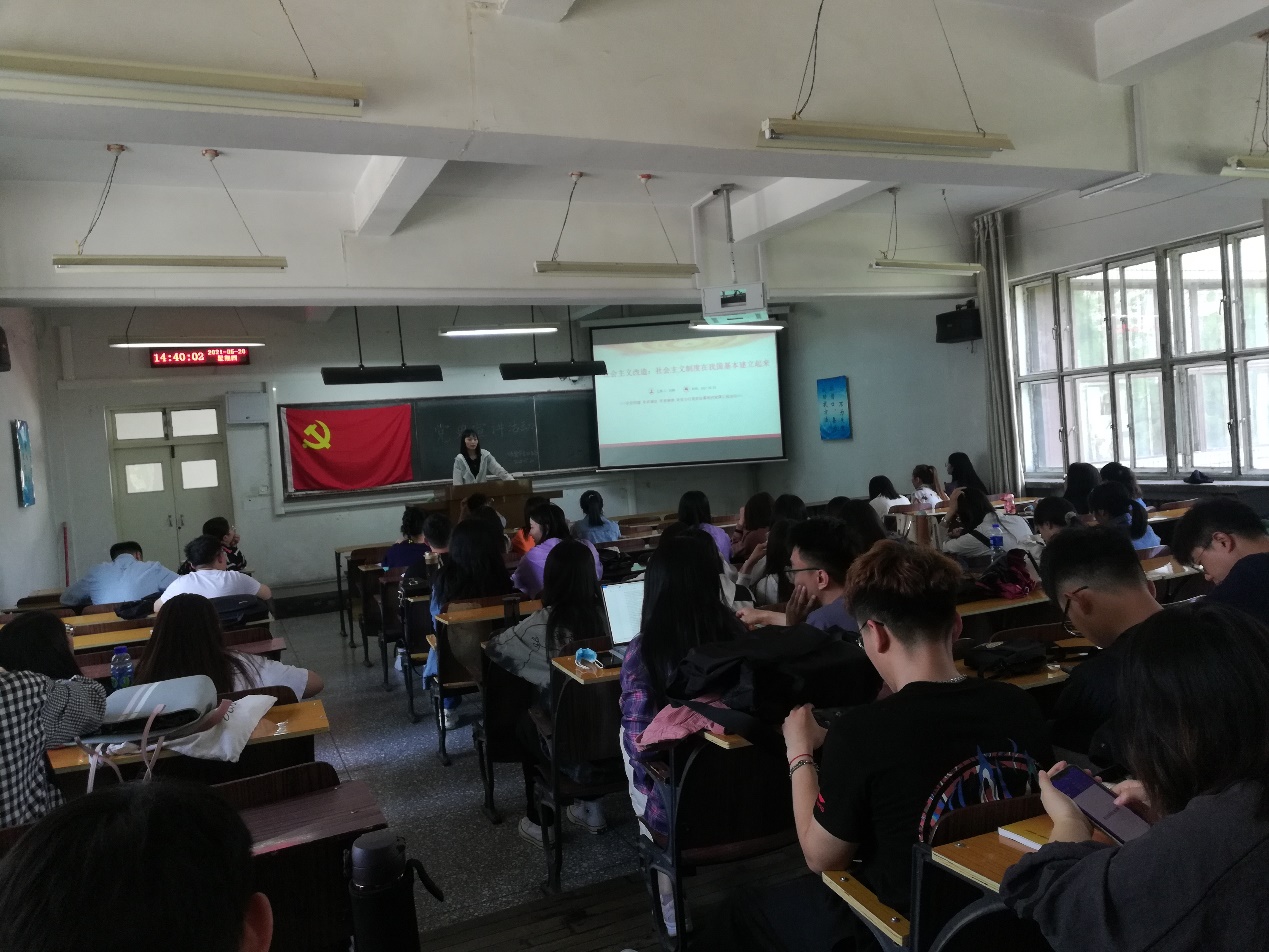 2021年5月20日beat365官方网站学生第四党支部开展党史宣讲活动,由马志琴、刘淼、高爽、宋月强、封思洁、张珍珍、刘朝晖,分别就掀起土地革命的风暴、中华人民共和国成立和社会主义制度的建立、社会主义建设的探索和曲折发展、伟大历史转折和中国特色社会主义的开创、把中国特色社会主义全面推向21世纪、在新形势下坚持和发展中国特色社会主义以及中国特色社会主义进入新时代等主题进行宣讲。