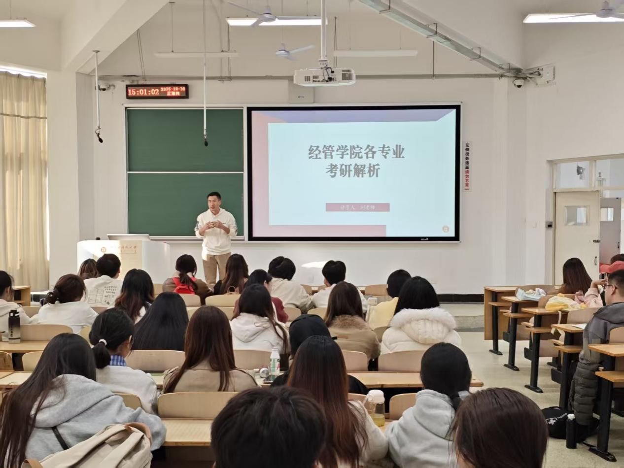 为帮助大三学生更好地规划备考路径,解答备考过程中的疑惑,提升复习效率。10月30日,beat365官方网站邀请研途机构刘宝林老师举办主题为《VACU时代下的经管人才破局:从”广谱“知识到“精准”职业定位》的考研指导讲座,大三年级各班级60余名同学参加本次讲座。