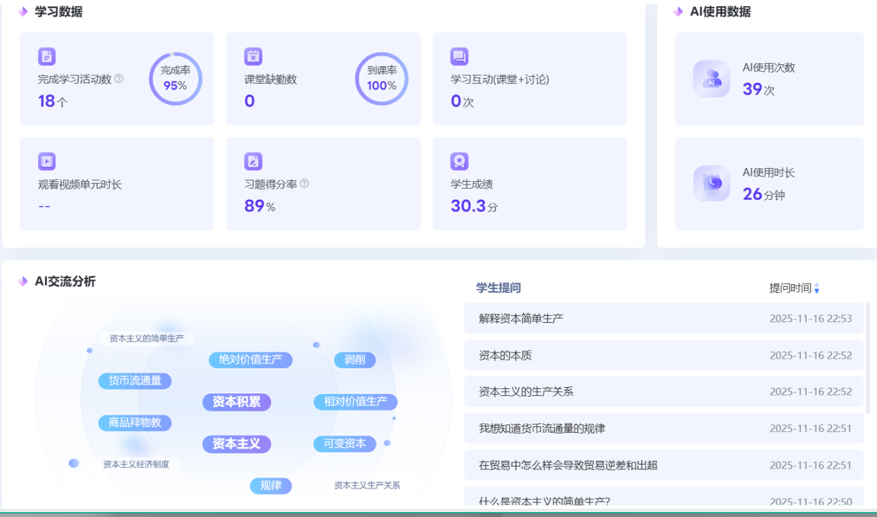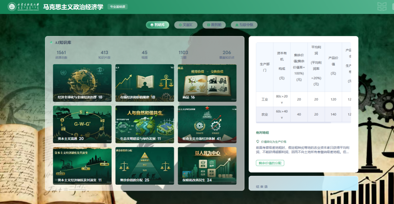 《马克思主义政治经济学》智慧课程建设实践,将数智化工具与高质量教学深度融合,守正创新推动课程创新升级,为培养复合型经济人才注入新动能。