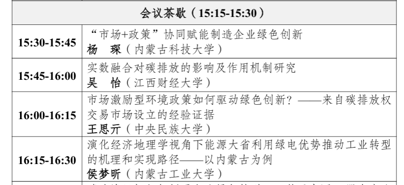 2025年6月14日,由中国区域经济学会和内蒙古财经大学主办,内蒙古财经大学资源与环境经济学院、内蒙古生态经济研究会和中国社会科学院西部发展研究中心承办的“绿色低碳转型赋能区域高质量发展学术研讨会”在内蒙古自治区呼和浩特市成功举办。beat3652023级应用经济学专业硕士研究生焦桂萍、杨琛同学,2023级管理科学与工程专业硕士研究生王明慧同学的论文入选此次论坛,并受邀分别在生态保护与绿色低碳发展、双碳目标下生态治理与绿色发展转型分论坛发言。 学术会议是展示研究成果、交流新思想和建立专业联系的绝佳平台。通过参与学术会议,同学们将有机会深入了解自己研究领域的最新动态和学术前沿,这不仅能够启发的研究思路,还能增长的学术见识。 学院致力于激发学生的学习热情,鼓励研究生们迈向更广阔的学术舞台,积极投身各类学术会议,展现交流学术成果。学院努力营造积极的学术氛围,支持研究生的成长和发展,期望研究生在学术探索的道路上不断进步,实现自己的学术梦想!