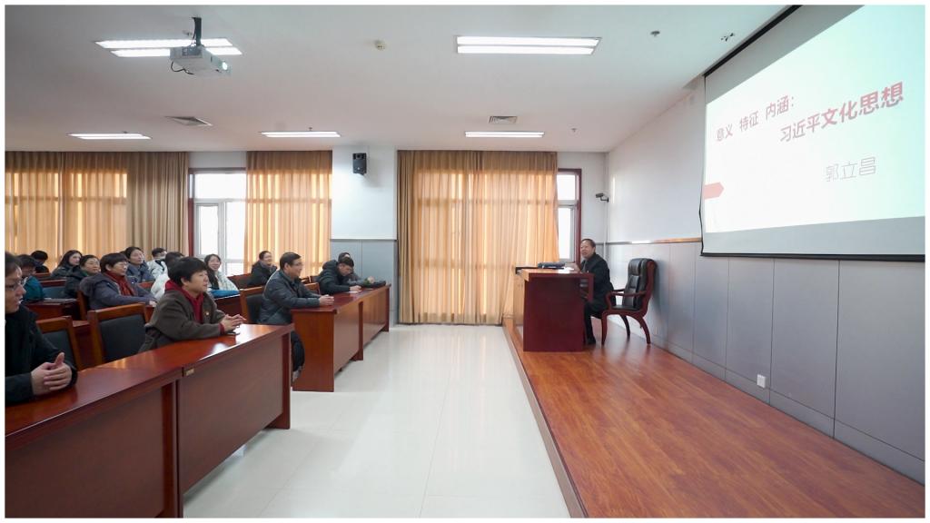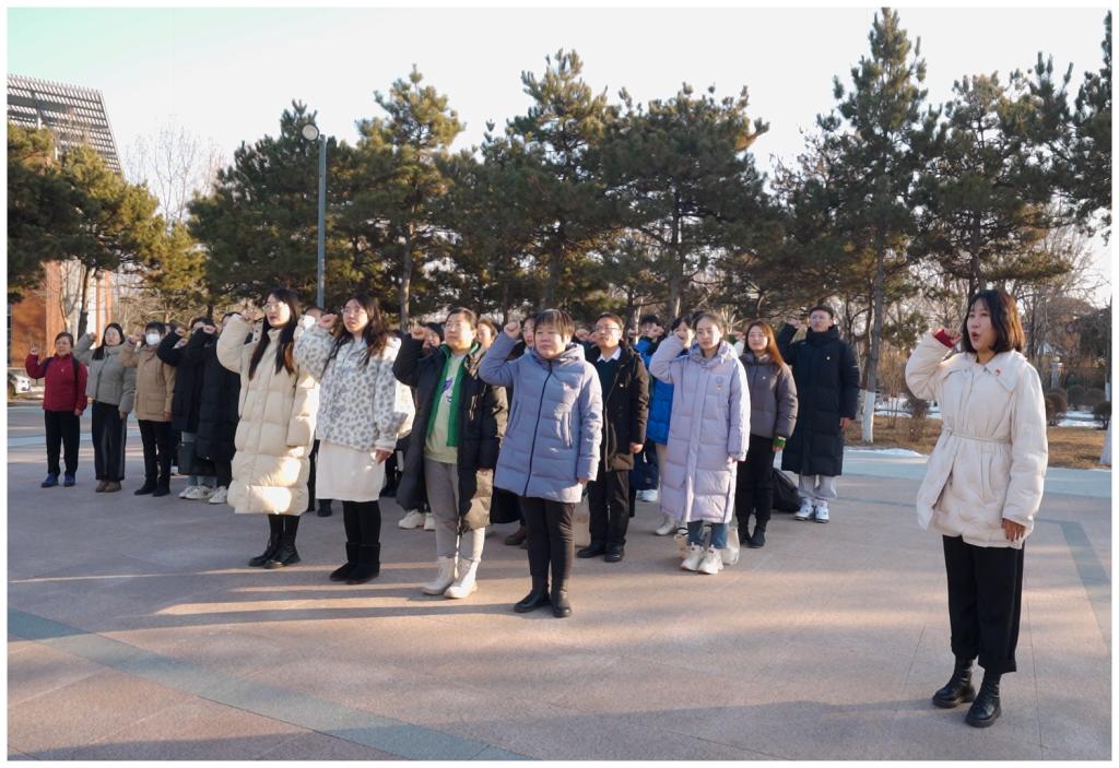 到达市委党校后,首先进行了王立红、孟文静、王伶月、郭亚芳4位新党员的入党仪式,在李大钊广场上面对鲜红党旗庄严宣誓,其他党员同志重温入党誓词;随后在党校讲解员带领下对秦皇岛党员组织生活馆进行了参观学习;最后学院党委书记郭立昌以《习近平文化思想的意义、特征、内涵》为题给全体思政课教师讲授专题党课。