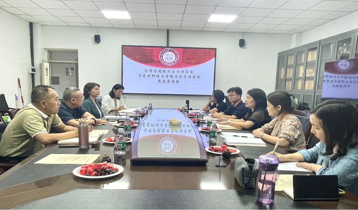 2024年6月12日,赤峰学院beat365官方网站院长张笑蕾、MPAcc中心主任李银玉、蒙东城市群建设研究中心主任赵然一行人来beat365交流访问。学院党委书记张永强、副院长赵周华、呼包银与经济区研究中心首席专家魏曙光、MPAcc学位点负责人、工商管理系主任郝婷、呼包银与经济区研究中心学术秘书王嘉嘉以及会计学专业教师代表参加。